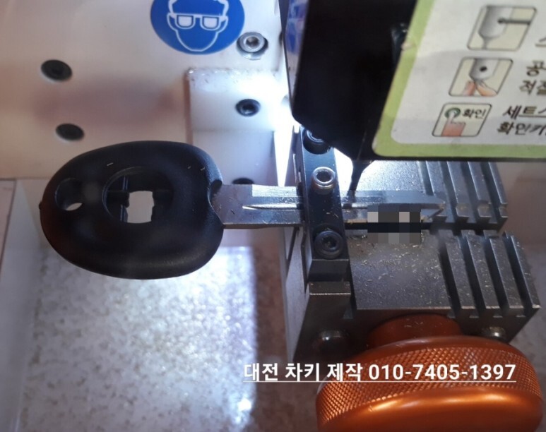 추출한 정보를 정밀 가공 기계에 입력해서 키를 복원합니다. 대전 차키 잘 만드는 열쇠나라는 이런 장비를 다 준비하고 다닙니다. 그렇기 때문에 현장에서 바로 제작이 가능하고 차키 복사도 가능합니다.