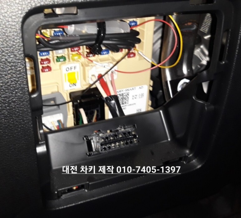 퓨즈들이 보이고 아래쪽에 OBD 단자를 발견할 수 있습니다. 이쪽에 프로그램 장비를 연결해서 키를 코딩합니다. 이 장비들도 다양하고 자동차 제조사마다 다른 장비를 사용해야 할 수도 있습니다. 차 종류가 워낙 많다 보니 모든 걸 커버할 수 있는 장비가 없어요. 대전스마트키 복사 및 제작 전문가인 저희처럼 여러 장비를 보유해야 그 많은 차들을 커버할 수 있습니다. 저희는 현대 기아, 쉐보레, 쌍용, 르노삼성 자동차라면 거의 커버할 수 있습니다. 일부 수입차들도 가능하고요.