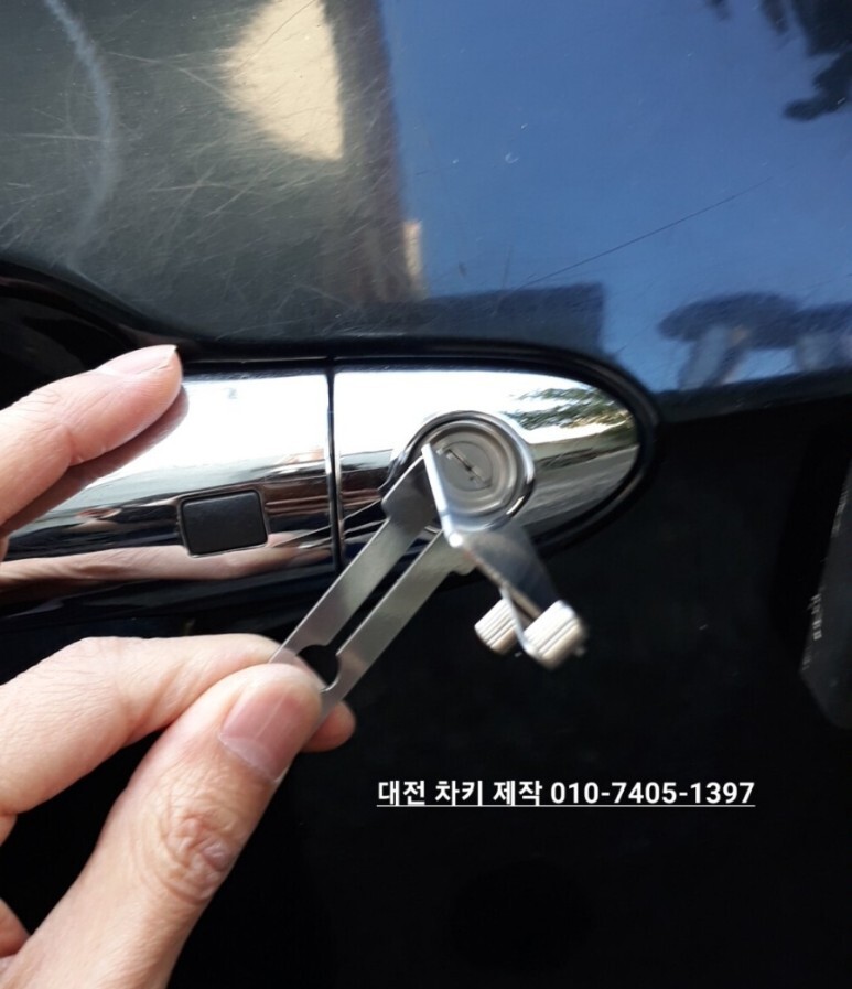 락이 해제됐어요. 대전 스마트키 제작 전문 업체인 저희는 이렇게 해정 작업을 통해 차량에 손상이 전혀 가지 않는 방식으로 문을 엽니다. 문 틈을 강제로 벌려서 열게 되면 차 문을 닫아도 문 틈이 벌어져 있게 되고 그 틈으로 풍절음이 생기기도 합니다. 개문 작업도 저희와 같은 전문가에게 맡기시는 게 좋습니다. 이렇게 키가 해정이 됐고, 일반 키 타입 차량은 이 상태에서 원본의 데이터를 읽고 물리적인 키를 만들 수 있습니다. 하지만 스마트 키 적용 차량은 이제 다른 작업을 해줘야 시동을 걸 수 있습니다.