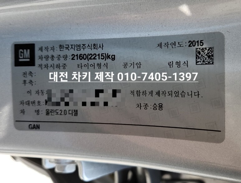 2015년식 올란도 차량입니다. 차량 정보 스티커에 있는 차대번호로 스마트키부품 정보를 확인할 수 있어요.