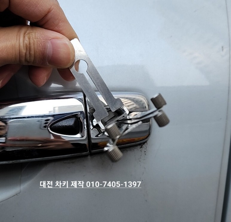 운전석 문 손잡이에 키 홀이 있습니다. 이 키홀에 특수 공구를 사용해서 마치 열쇠로 락을 해제하는 것 처럼 차량에 손상이 전혀 가지 않는 방법으로 문을 엽니다.