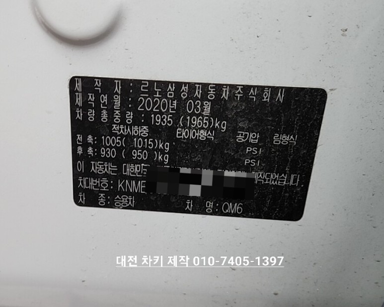 운전석 문을 열면 차체 프레임쪽에 사진과 같은 차량 정보 스티커가 붙어있어요.