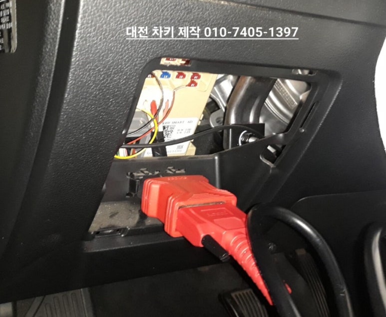 키는 이미 확보한 상태이고 obd 단자에 코딩 장비를 연결해서 키를 프로그램합니다.
