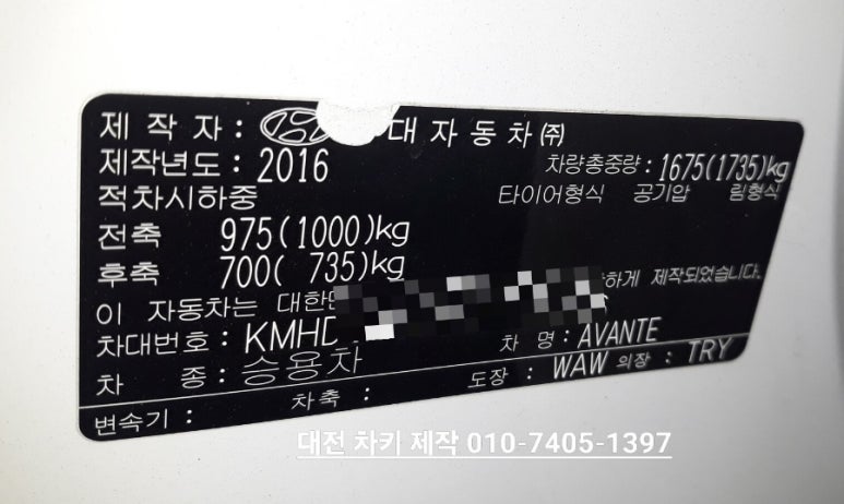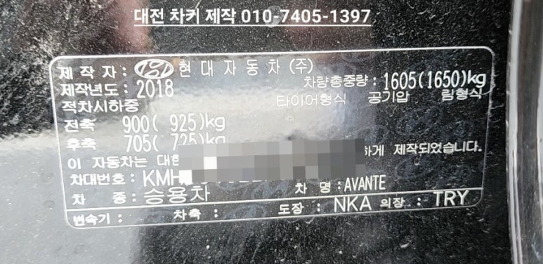 자동차 문을 열면 차체 프레임 쪽에 차량 정보 스티커를 확인할 수 있습니다.
