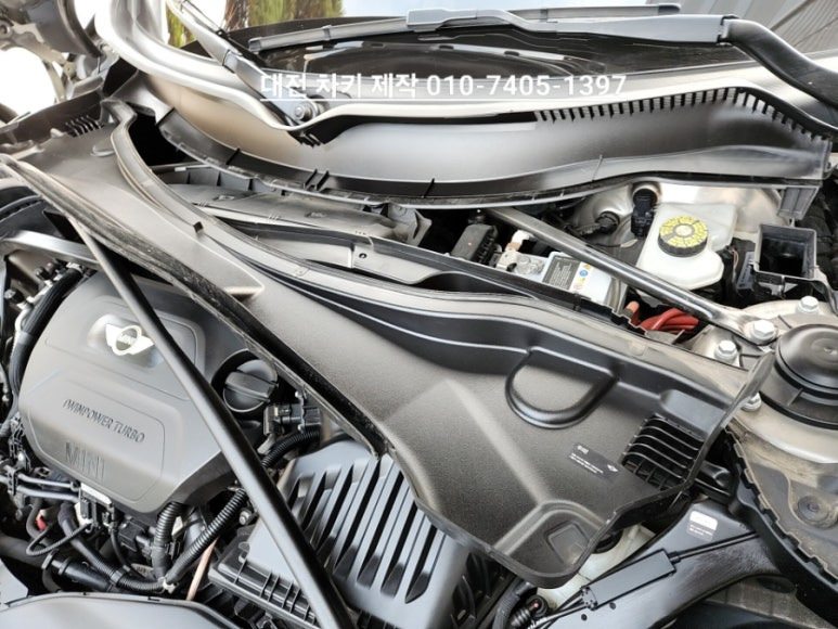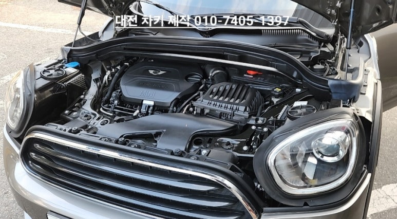 미니 쿠퍼 컨트리맨 2018년식 차량은 배터리가 위쪽에 숨겨져 있어요.
